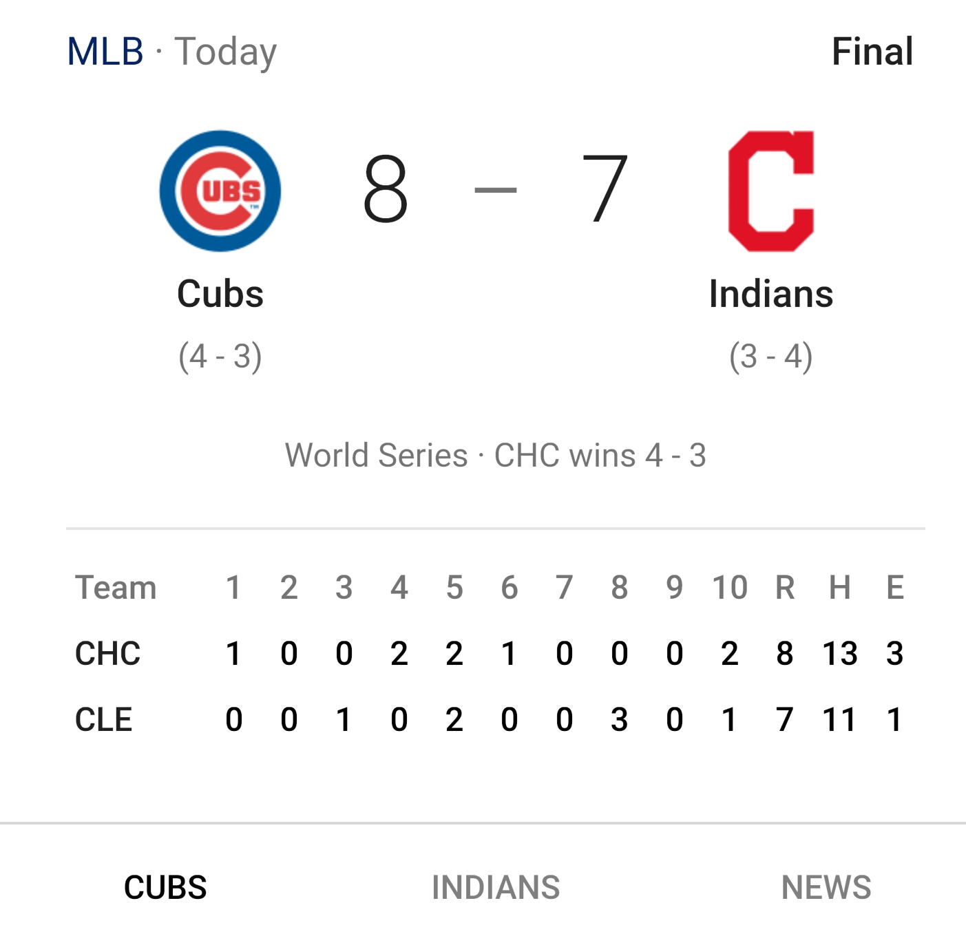 WWooowwwww 108 years later. congrats Chi Town. What a Game.